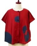 Mona Lisa Button Front Crop Top Solid Patch W/ Shashiko Red