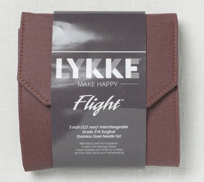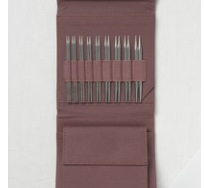 The set is packaged in a textured case with magnetic snap closure. Durable elastic bands hold needles securely in place & a separate notions pocket holds cables, end stoppers & other notions.