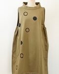 Mona Lisa Bell Fleece Dress Solid W/Multi Circle Print Khaki