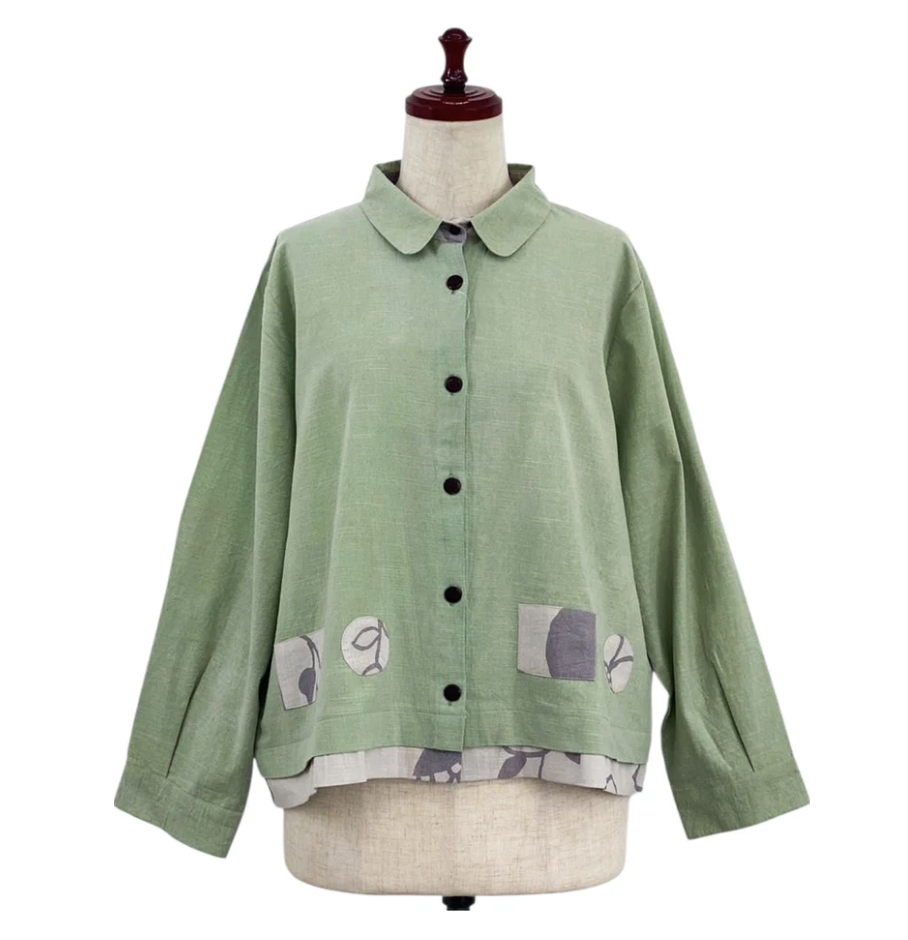 100% Cotton layered jacket with long sleeves, on seam pockets and button closures.