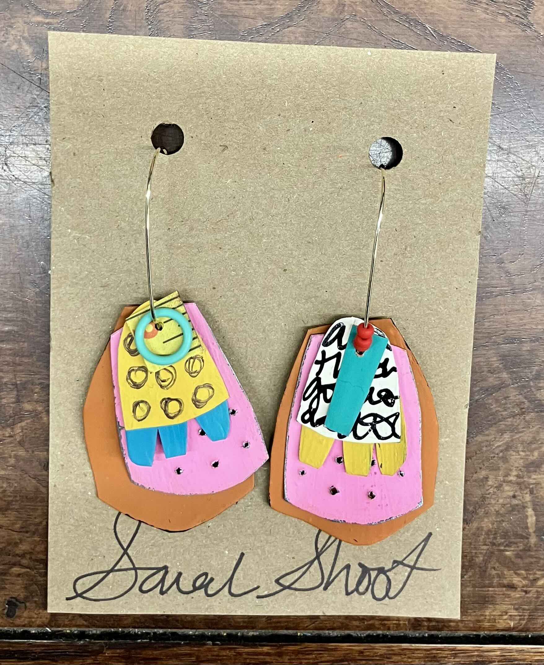 Hand-made, painted tin, and mixed media earrings- lightweight and fun to wear!