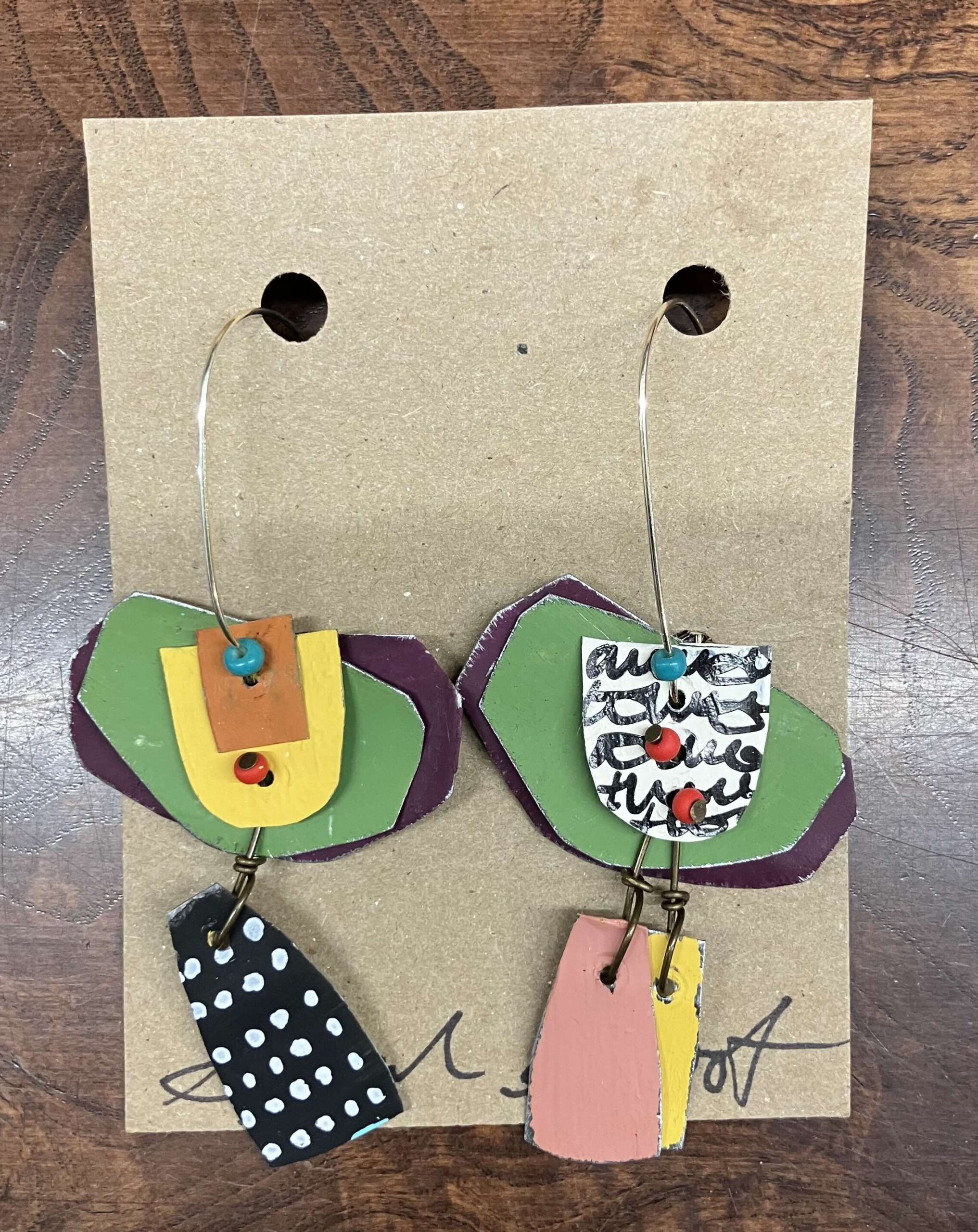 Hand-made, painted tin, and mixed media earrings- lightweight and fun to wear!