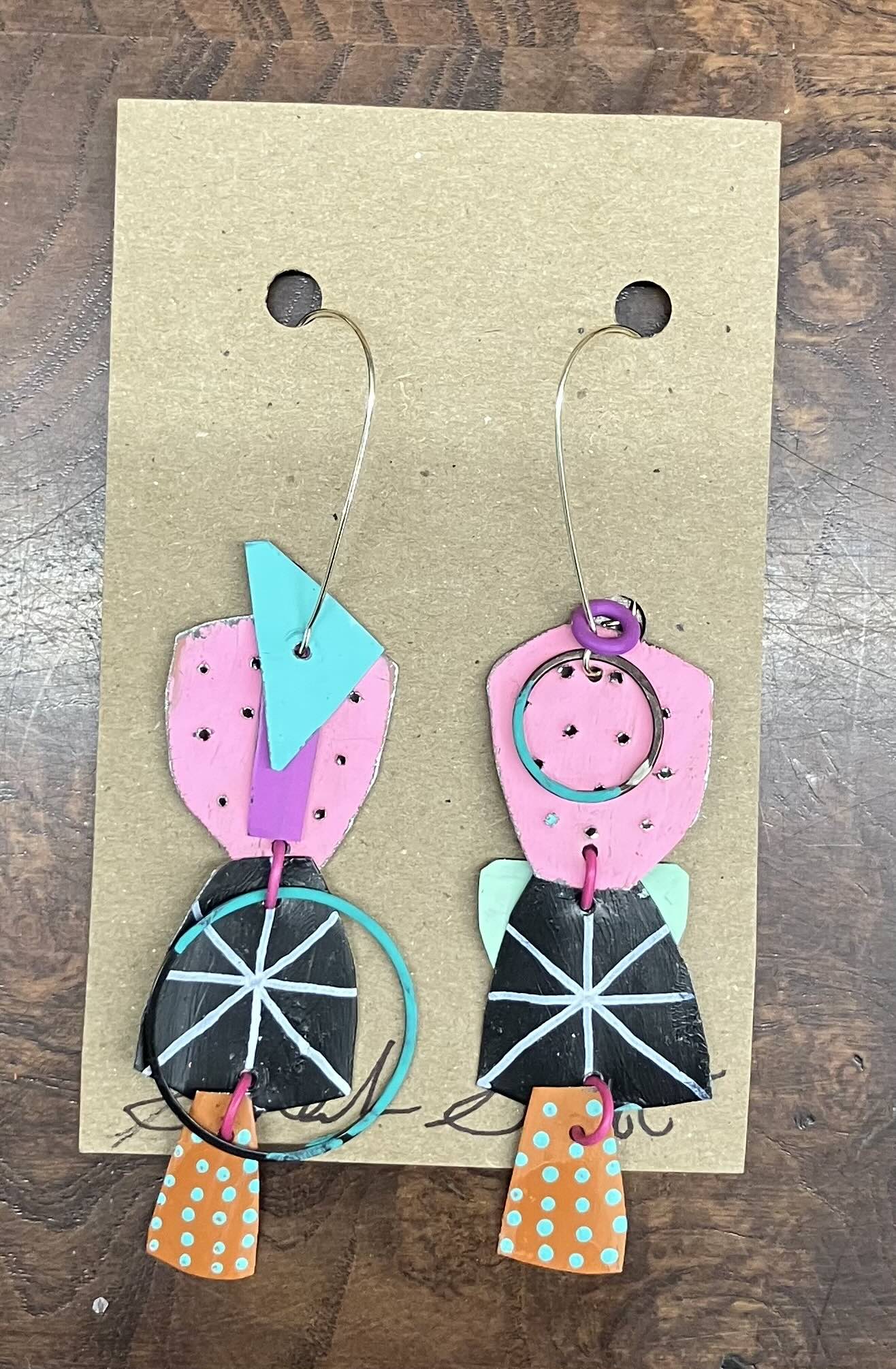 Hand-made, painted tin, and mixed media earrings- lightweight and fun to wear!