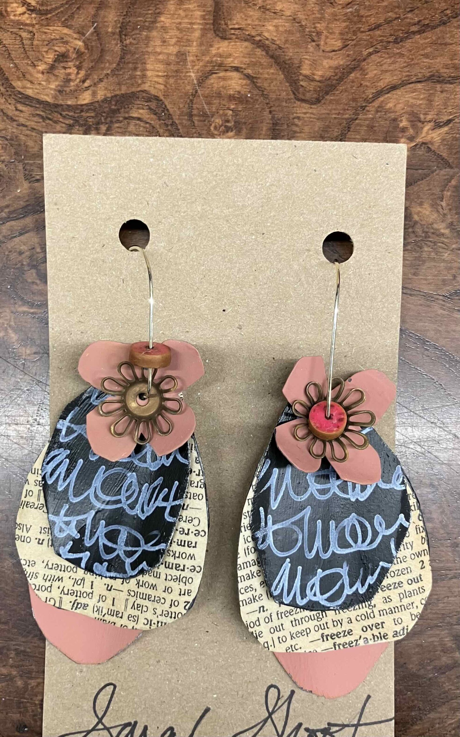 Hand-made, painted tin, and mixed media earrings- lightweight and fun to wear!