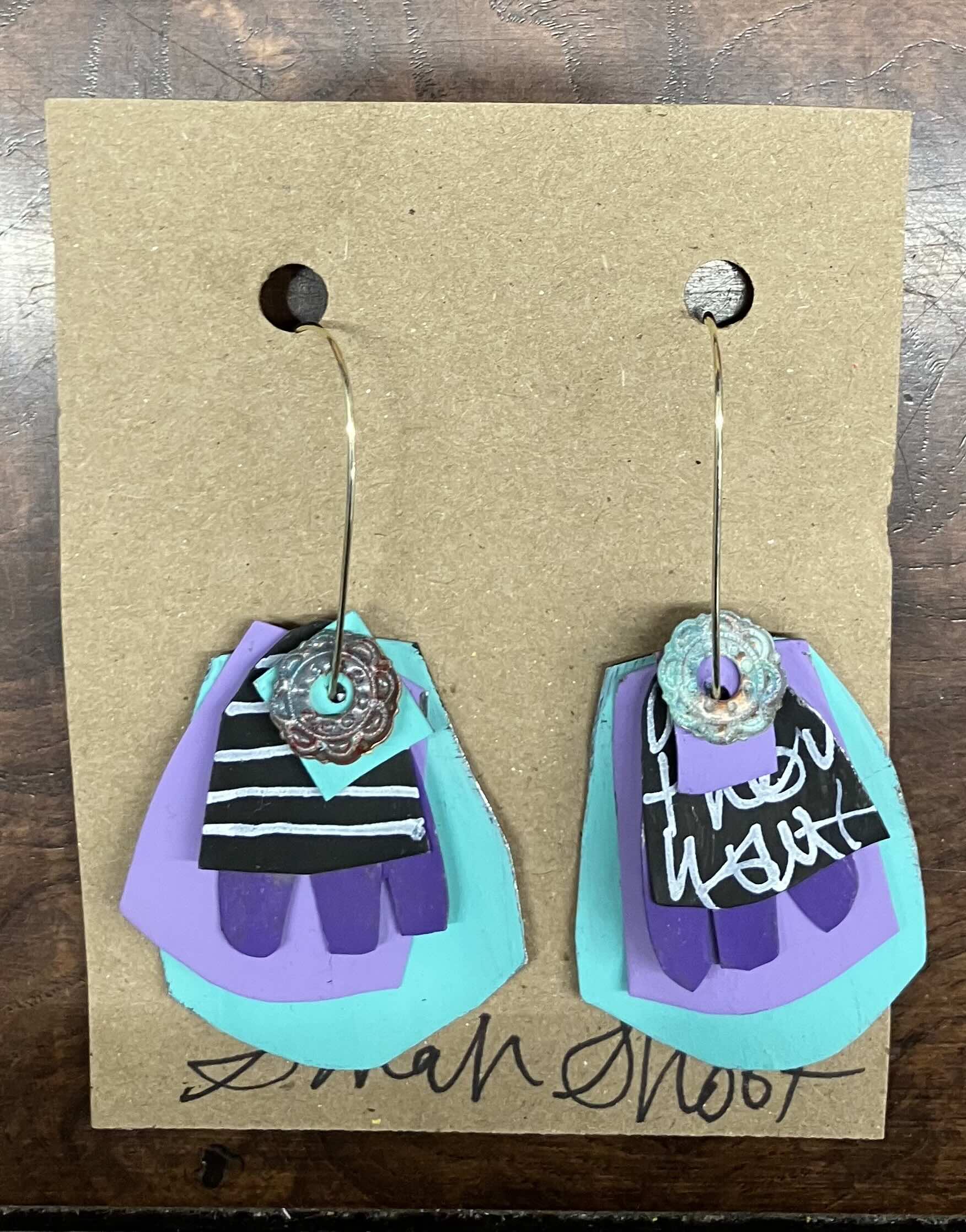 Hand-made, painted tin, and mixed media earrings- lightweight and fun to wear!
